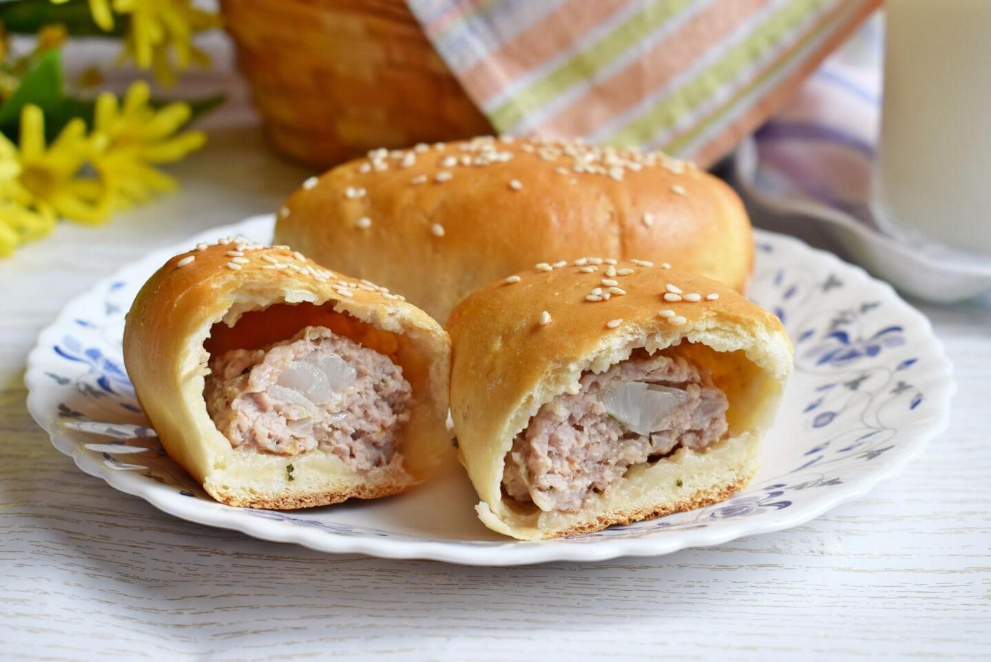 Eaten instantly! You canʼt buy these in the store! Minced pies made from yeast dough in the oven are a aroma for the whole house, a well-fed family and a good mood. Such pies always turn out to be very filling, so they can be easily prepared for lunch or dinner.