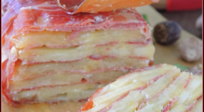 A delicious recipe accessible for beginners! In winter, you even need to treat yourself to a tasty and satisfying dish. You can call it a casserole or a gratin, but I call it mille-feuille, which means “a thousand leaves.” Layers of new potatoes alternate with delicious jamon, sweet soy sauce adds a spicy note, and nutmeg imbues the dish with its subtle aroma. Overall, very tasty! I invite you to dinner!