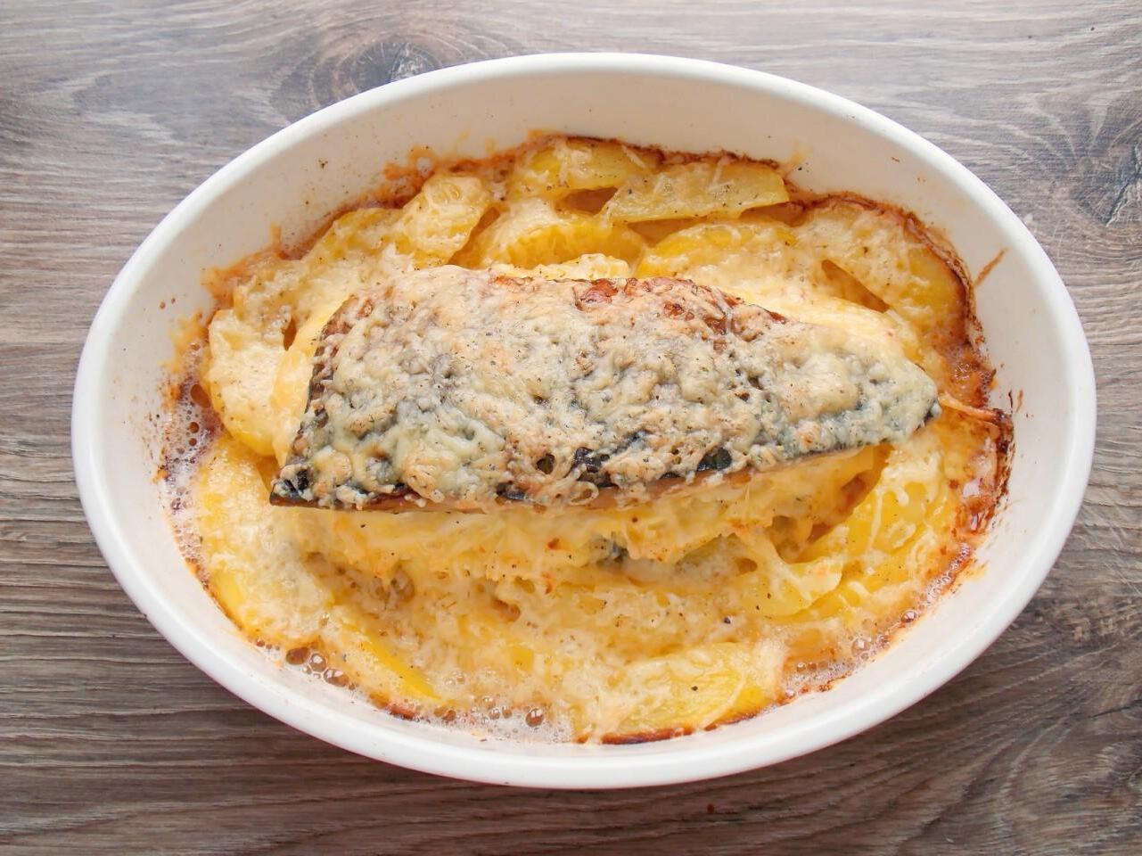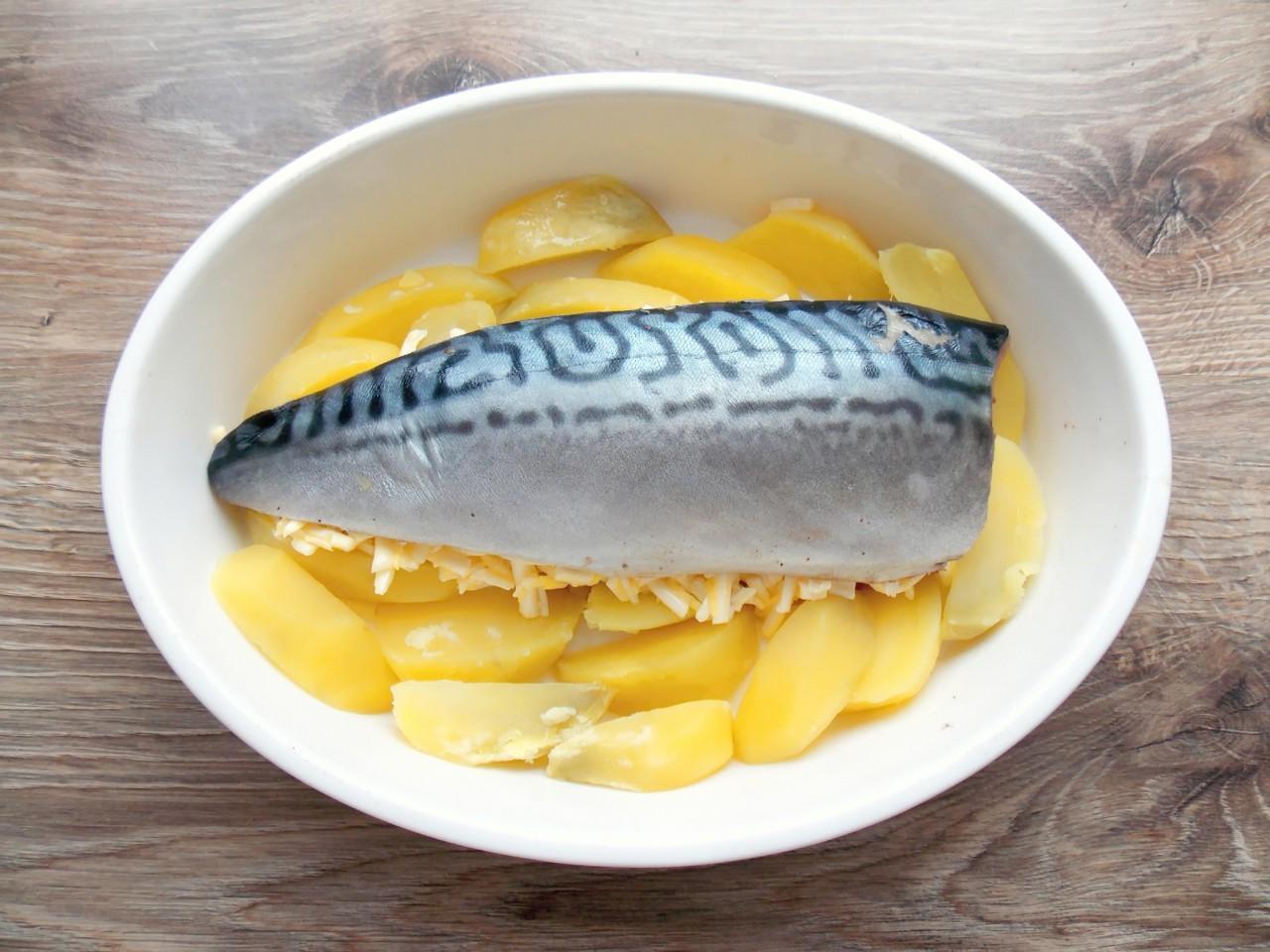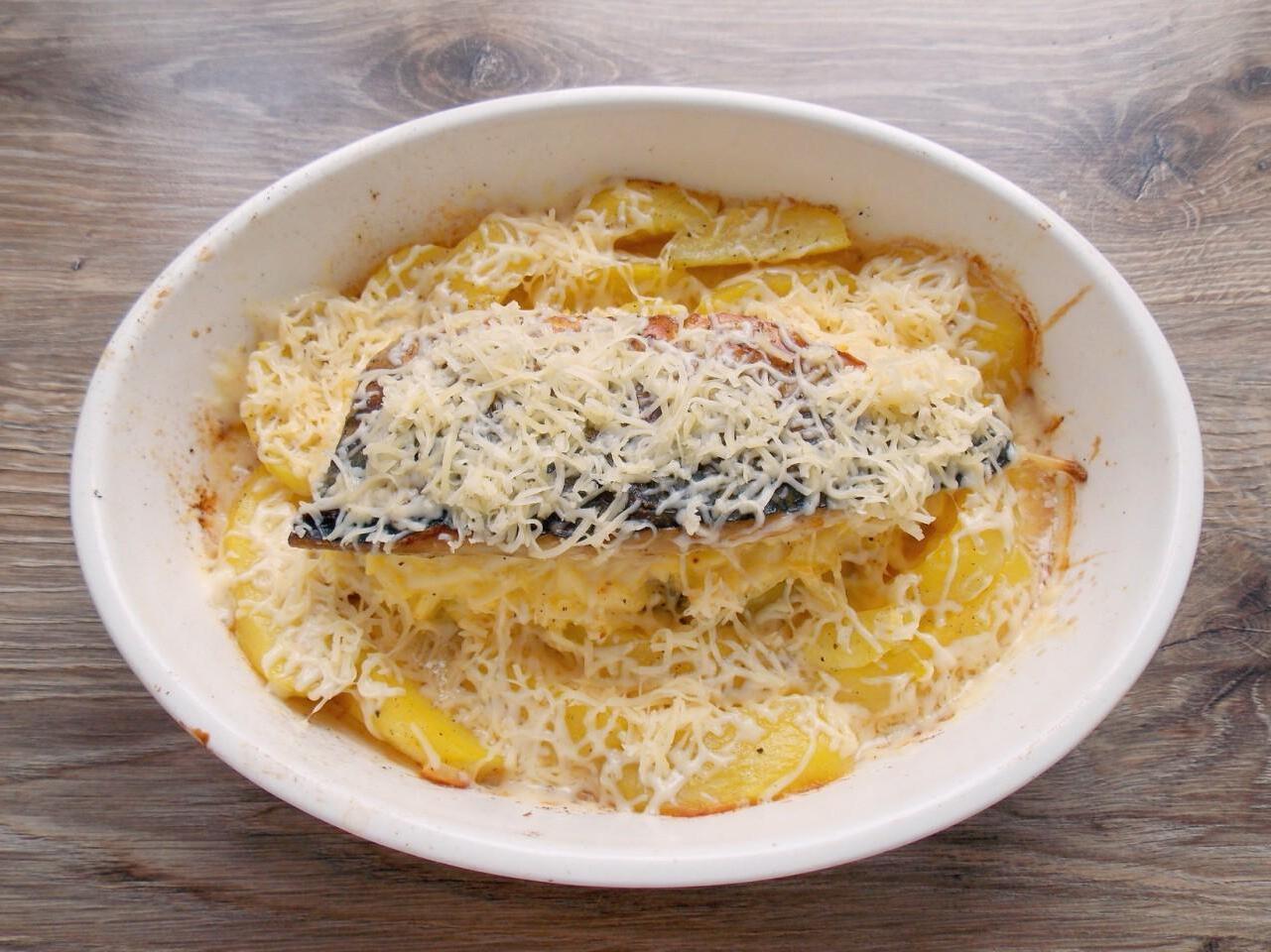 Baked Mackerel with Cheese and Potatoes