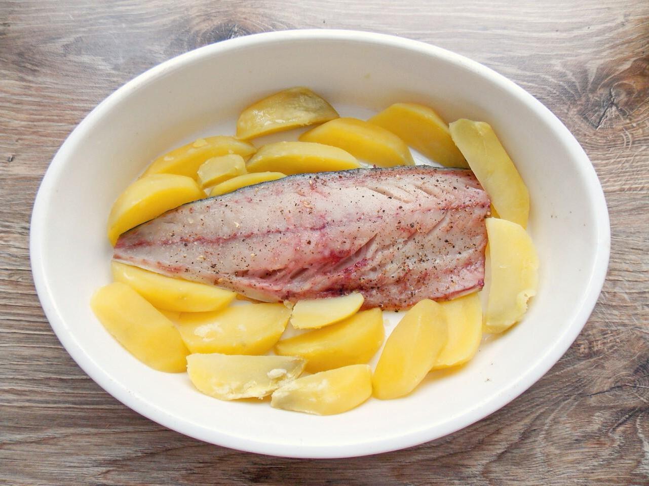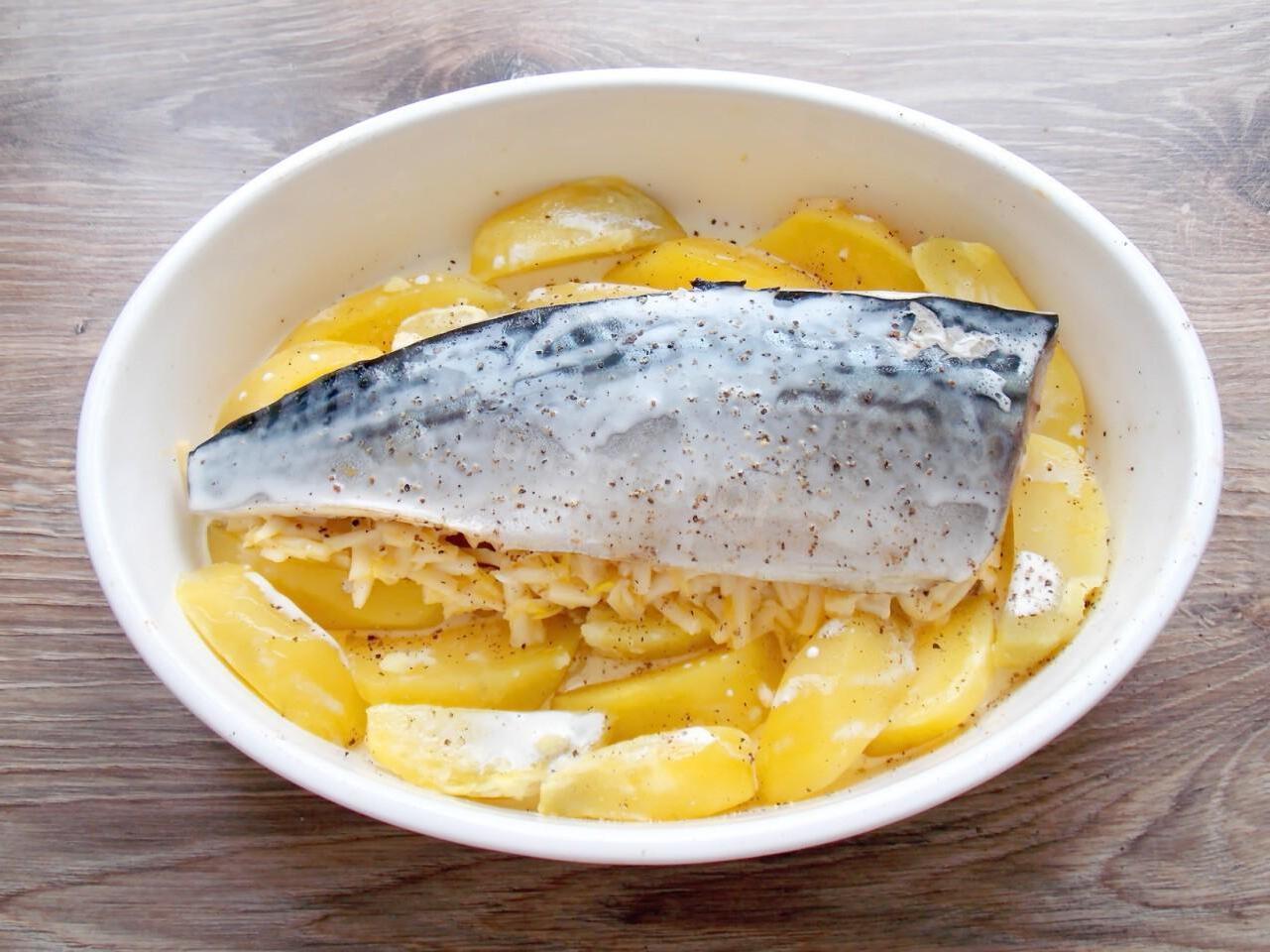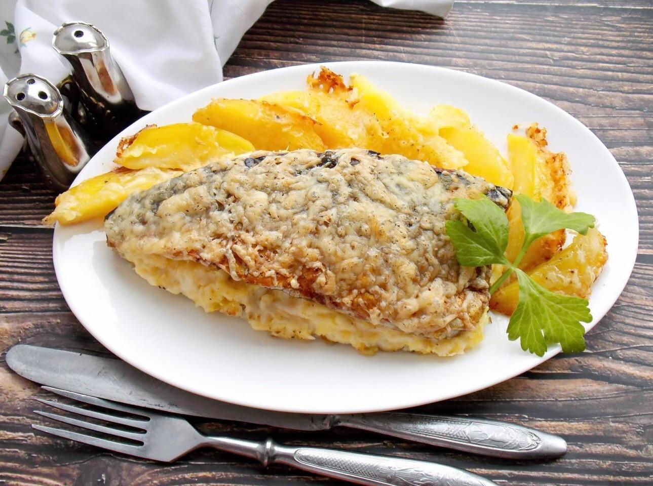 Baked Mackerel with Cheese and Potatoes