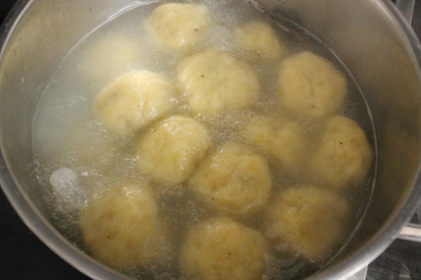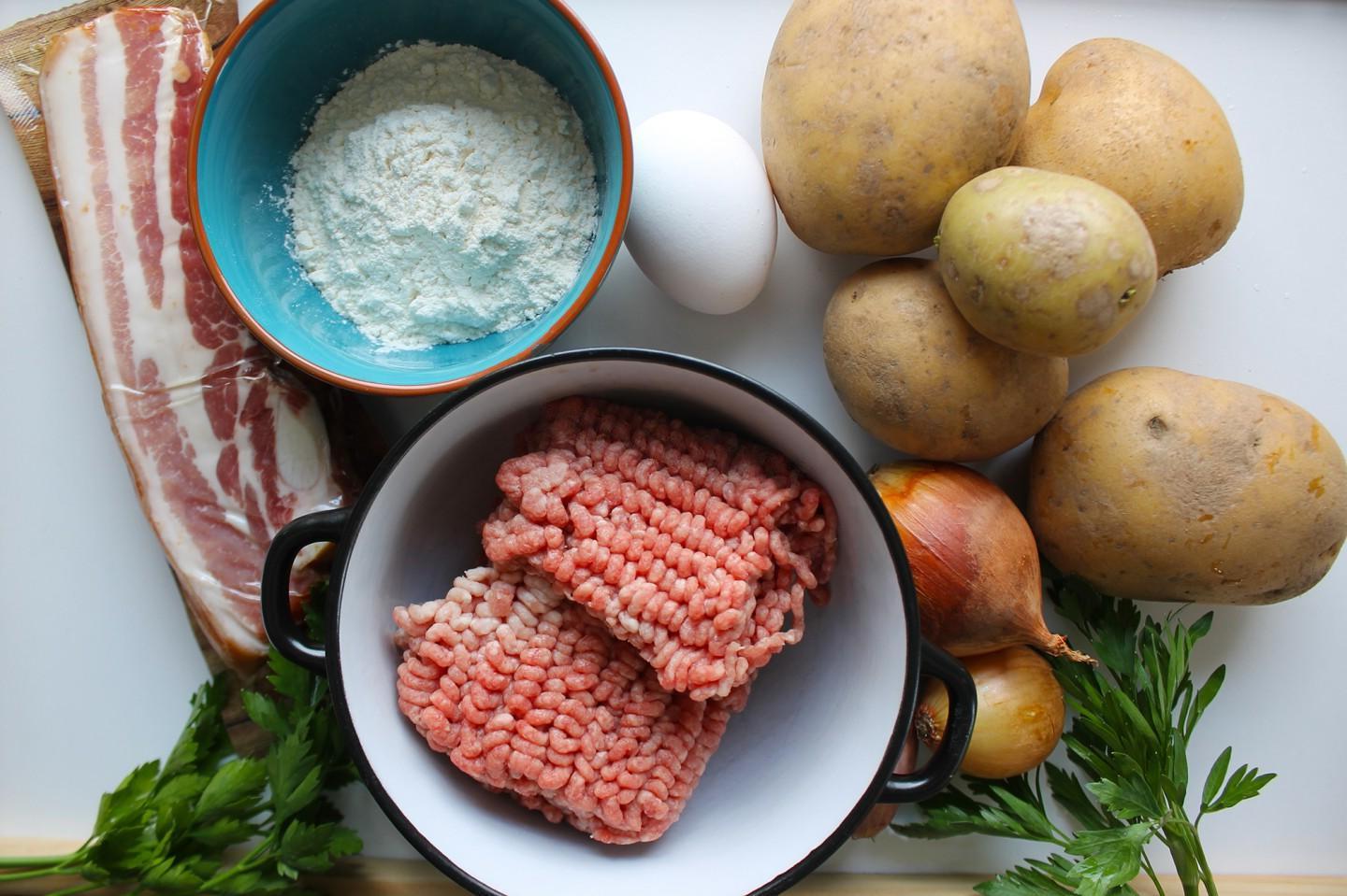 Unusual, tasty, satisfying, for adults and children! Potato dumplings with meat are good for a family lunch or dinner. You can serve them with a salad of fresh vegetables and your favorite sauces. Meat balls with onions fried in lard or butter are very tasty.