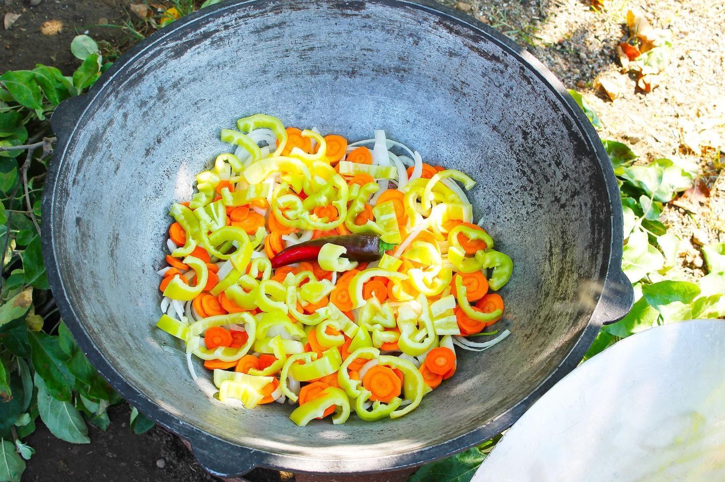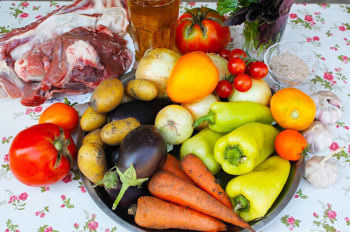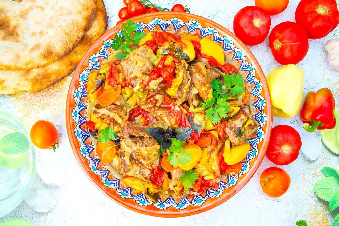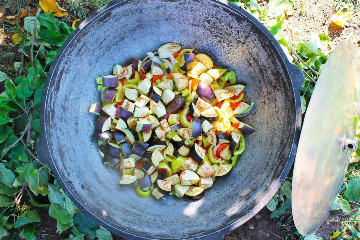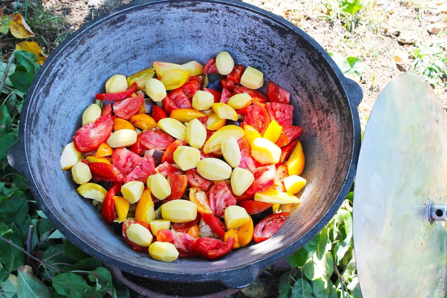 Nourishing, healthy and tasty! A riot of colors in a plate! Khashlama in a cauldron over a fire is an excellent dish of Caucasian cuisine for a large friendly company! Meat and vegetables stewed in beer and their own juice are simply the height of gustatory bliss! You can cook khashlama at home or over a fire.