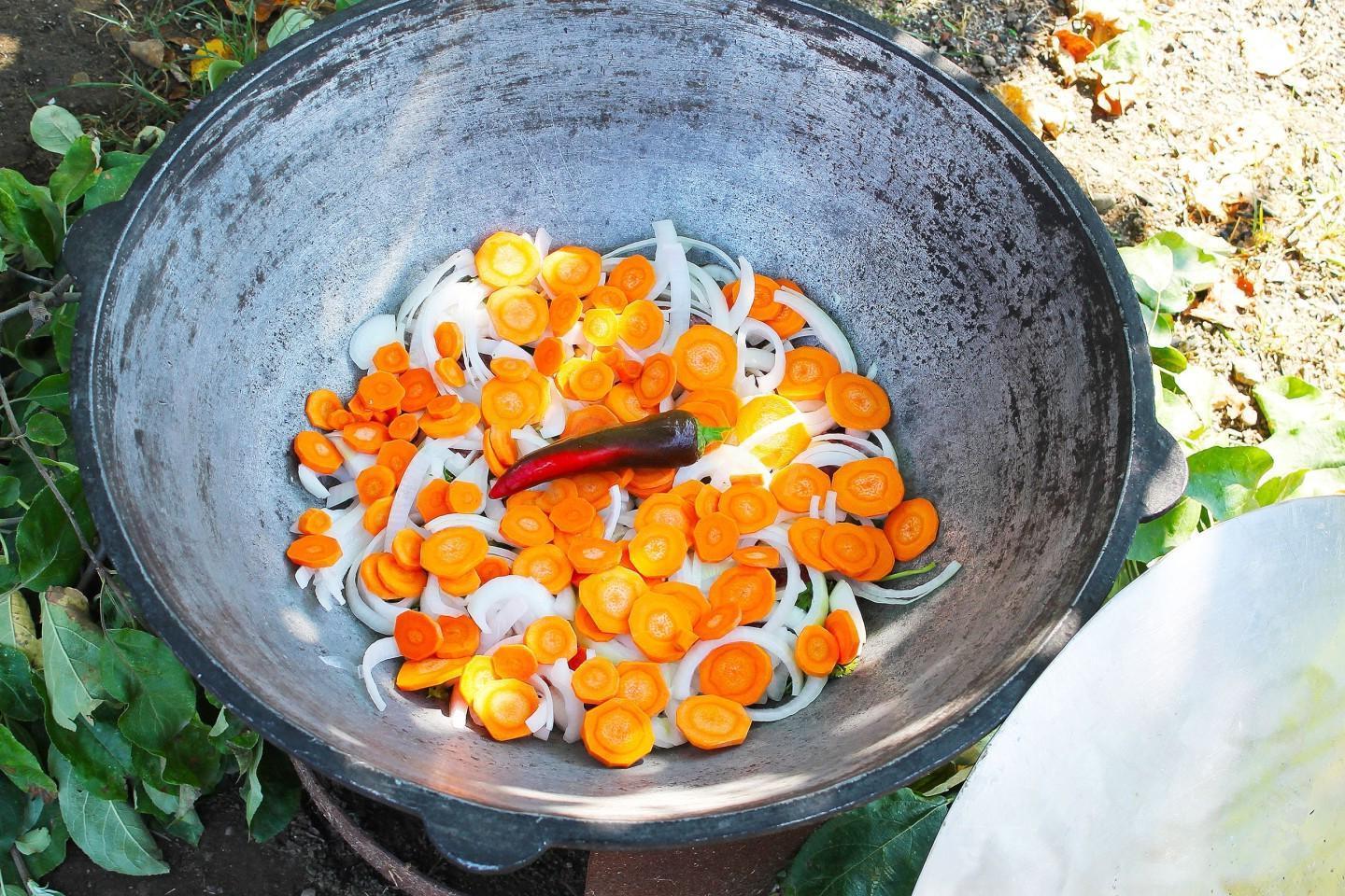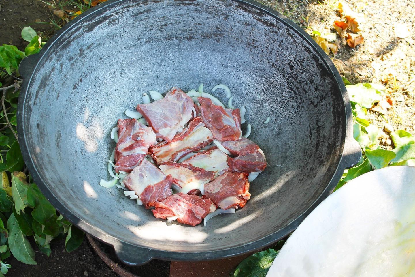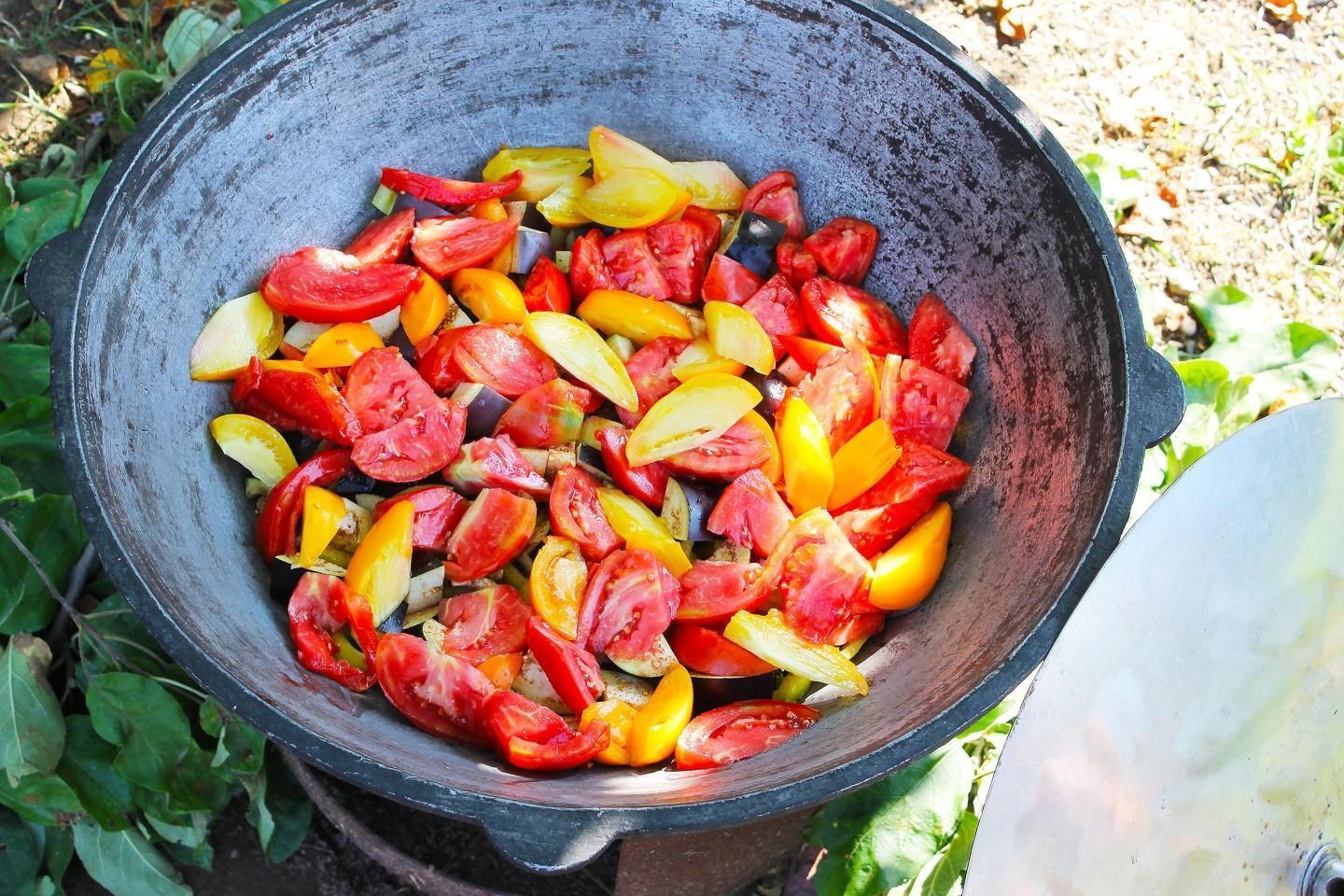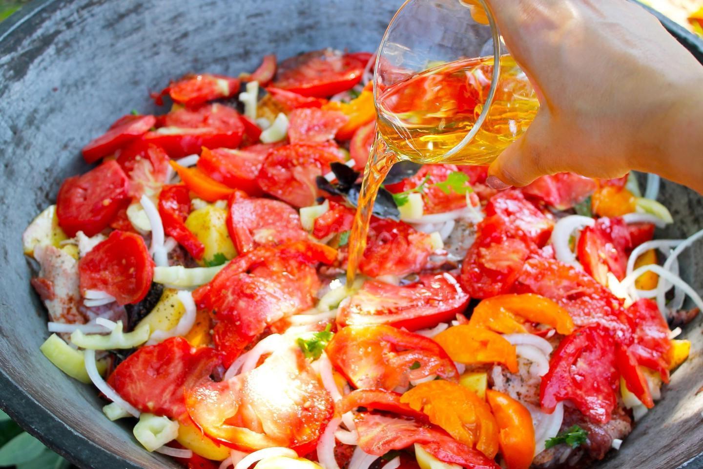 Nourishing, healthy and tasty! A riot of colors in a plate! Khashlama in a cauldron over a fire is an excellent dish of Caucasian cuisine for a large friendly company! Meat and vegetables stewed in beer and their own juice are simply the height of gustatory bliss! You can cook khashlama at home or over a fire.