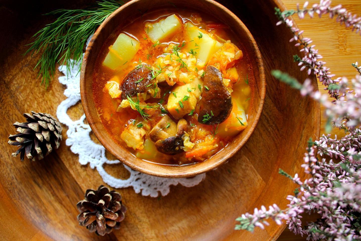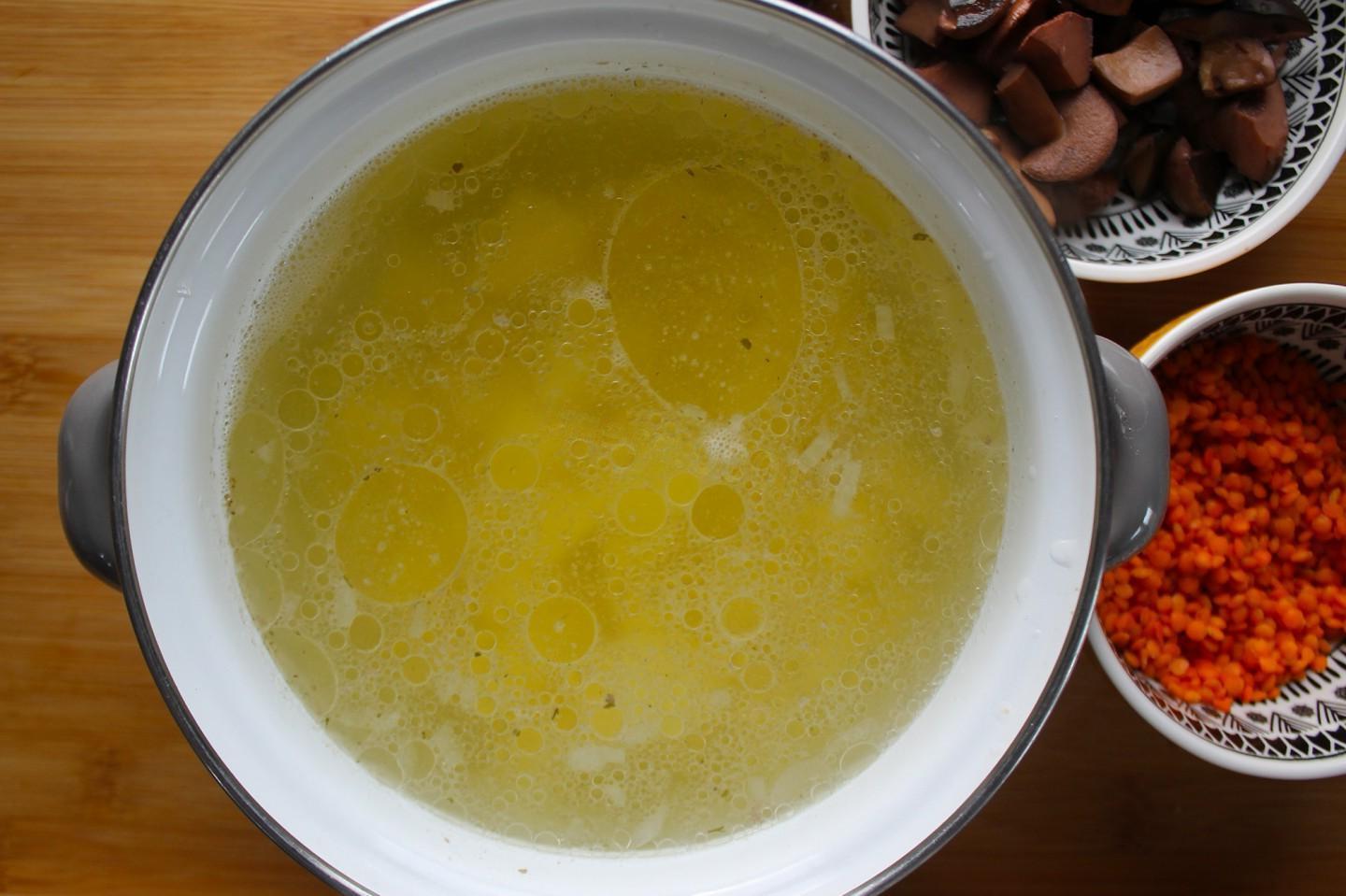 Delicious soup with the aroma of forest mushrooms! If you prepare lentil soup with vegetable broth or plain water, it can be offered during Lent or for those on a diet. Bright, tasty and satisfying. Letʼs try!