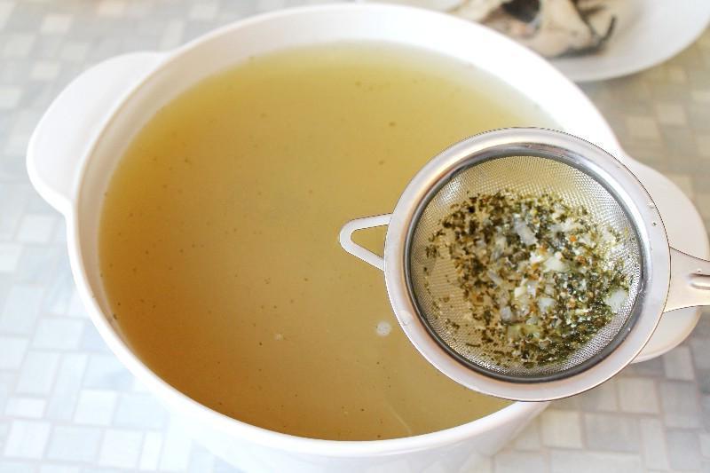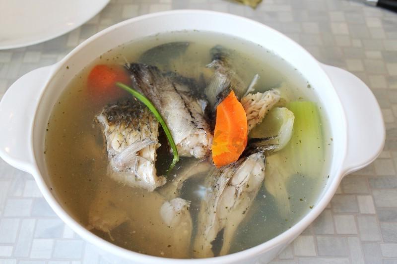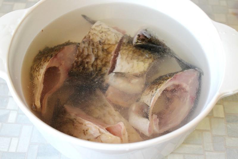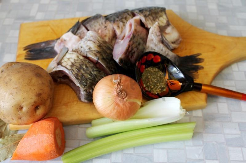 Delicious, dietary recipe for fish soup. Crucian carp is a very tasty lake fish; if it did not have such an abundance of bones, it would not have a price! That is why fish soup is usually not prepared from crucian carp alone, preferring to use crucian carp for fat, and some less bony fish is used for food. Fish soup according to this recipe is prepared by slowly boiling fish with spices and roots, almost while simmering — this produces a very tasty, rich, aromatic broth. The fish is then removed, the potatoes are boiled in the broth, the pulp is removed from the rib part and added to the soup. If desired, put pieces of fish into the finished soup; to do this, remove part of the fish before boiling.