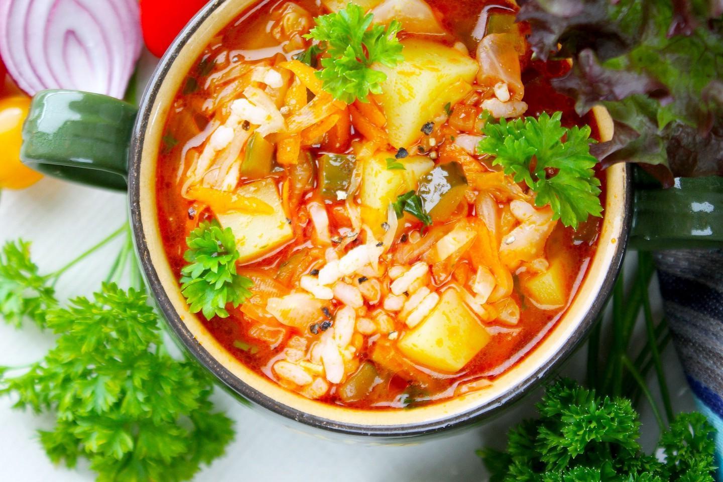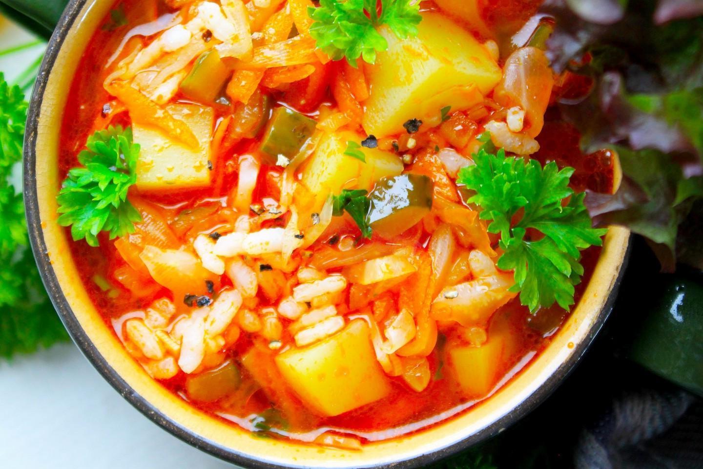 Hearty Rassolnik Soup with Cucumbers, Rice, and Cabbage