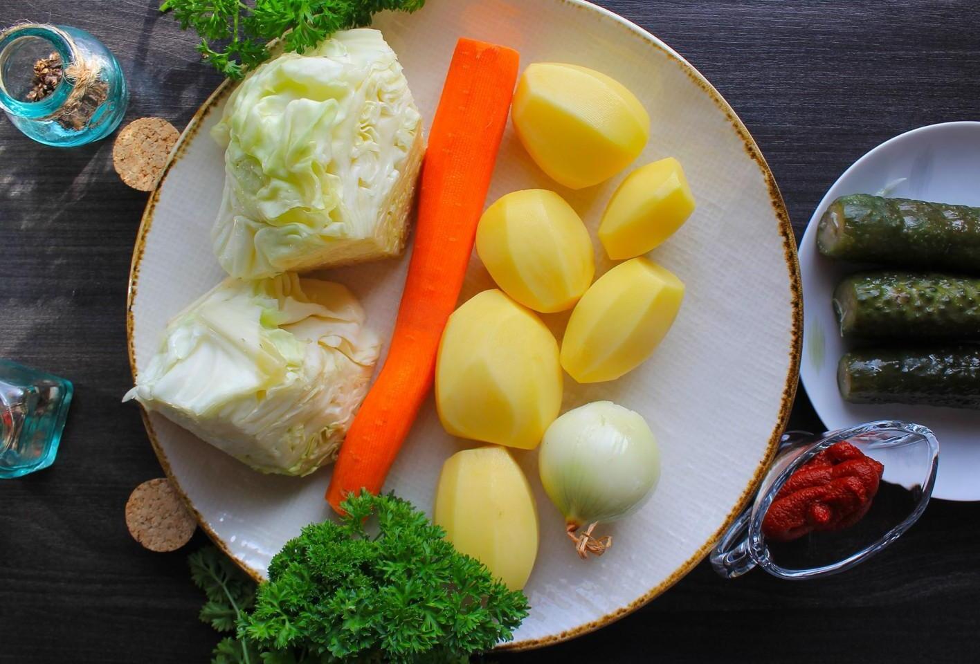 Delicious, satisfying, filling for lunch and dinner. Rassolnik with rice, cabbage and cucumbers can be prepared with plain water or vegetable broth and served during Lent. Fresh sour cream goes very well with pickle sauce.