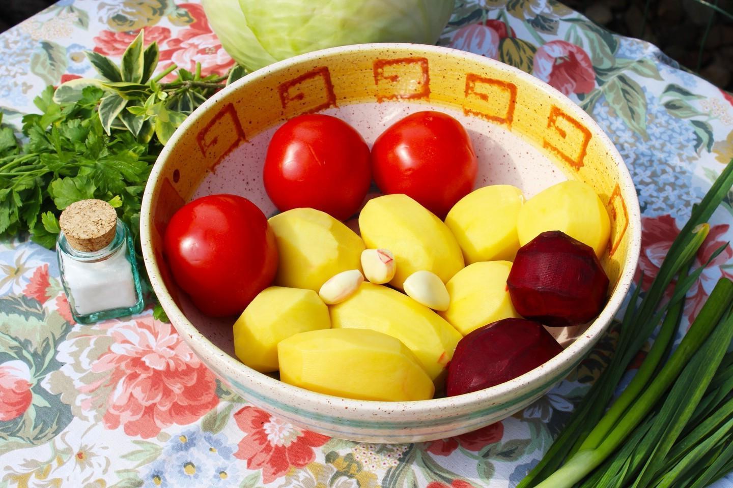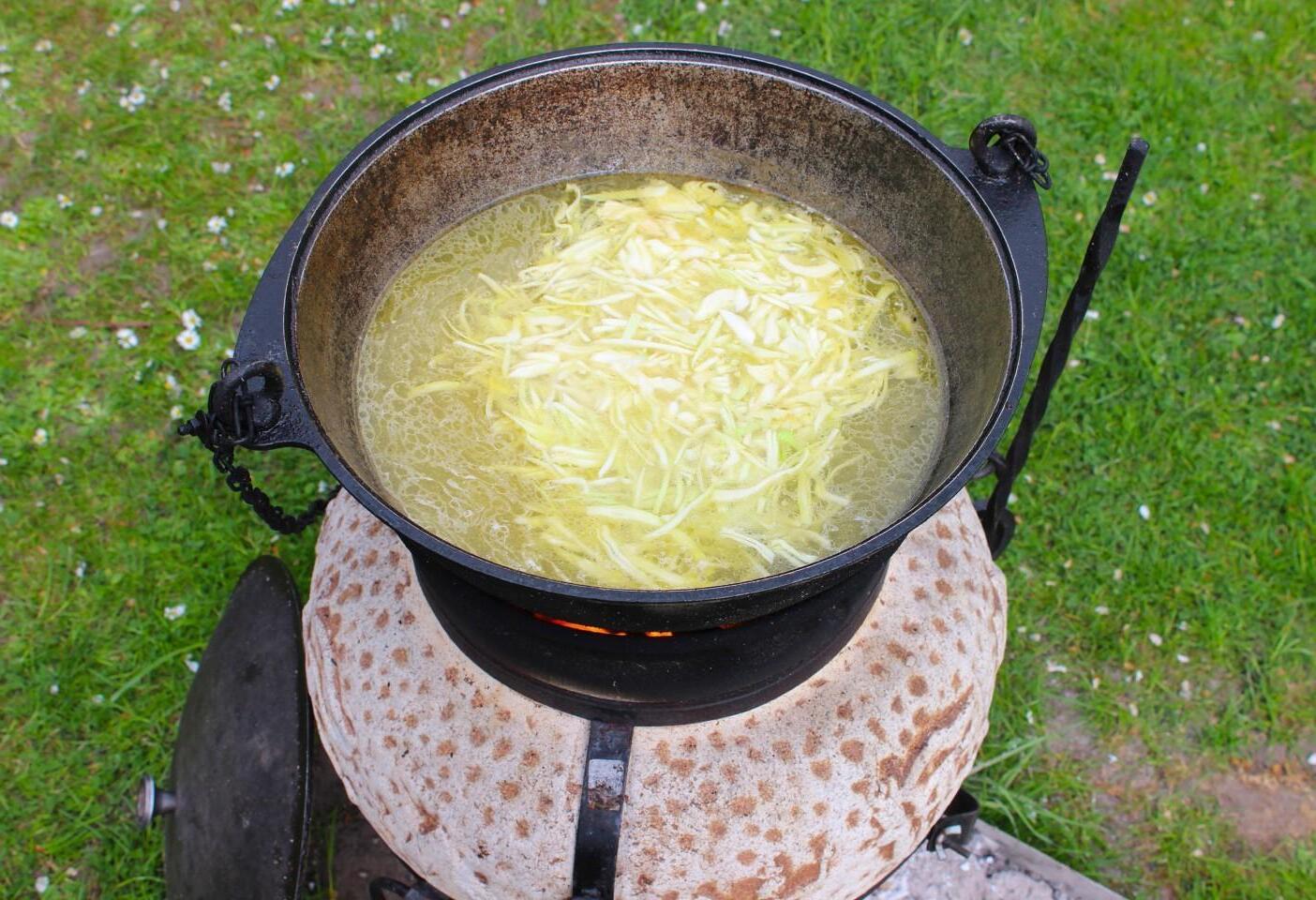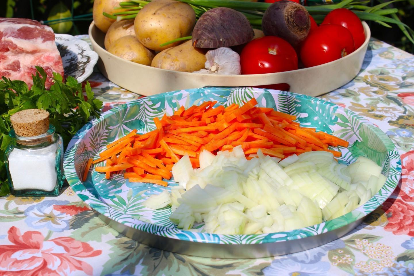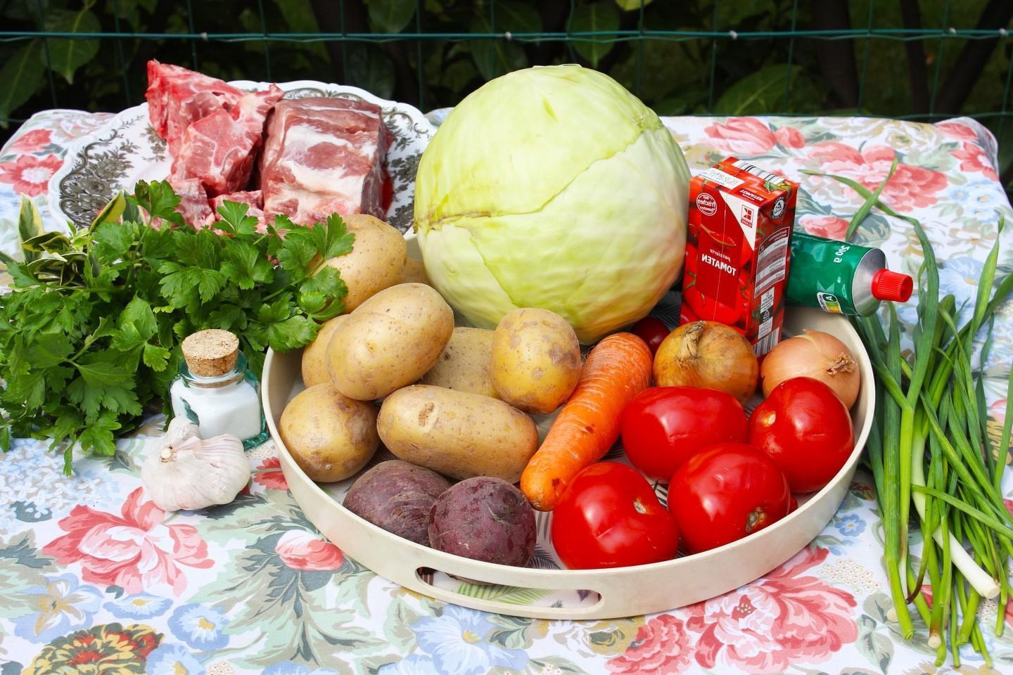 The most delicious and bright, rich, appetizing! You can cook borscht in a cauldron over a fire at the dacha or at a picnic with friends and family. The broth can be prepared from any meat: beef, pork, poultry, or you can make a dietary version using vegetable broth or water.