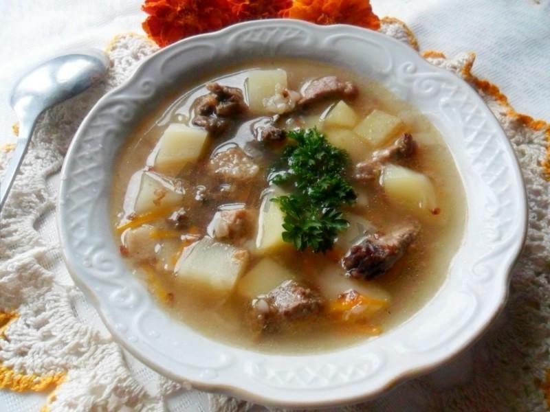 Delicious soup with pieces of fried meat. I really liked the soup, the cooking technology and the taste.