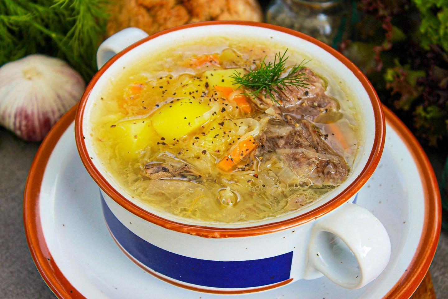 Rich, bright, appetizing! Delicious down to the last spoon! Sauerkraut cabbage soup with beef is perfect for lunch or dinner during the cold season. They turn out satisfying and warming. Serve with sour cream and fresh herbs.