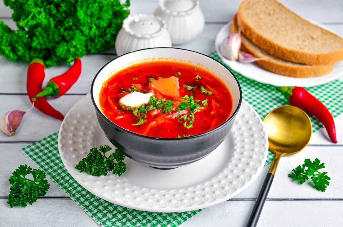 Hearty Vegetarian Borscht with Beets and Cabbage