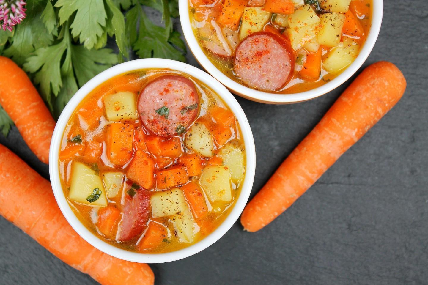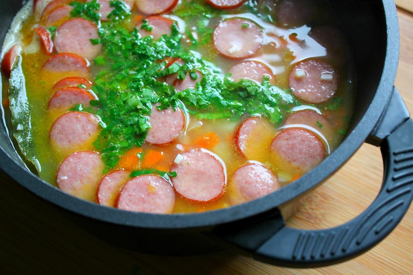 Thick soup will replace both the first and second courses! Soup with smoked sausages is very aromatic and tasty. It is prepared quickly and as simply as possible, so this recipe will be a real lifesaver when you don’t have much time to cook. The original name of the soup is “Möhreneintopf”.